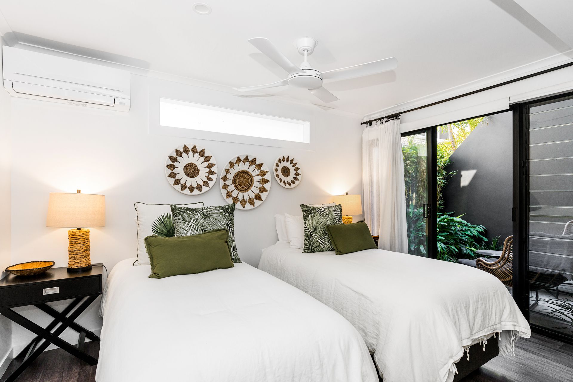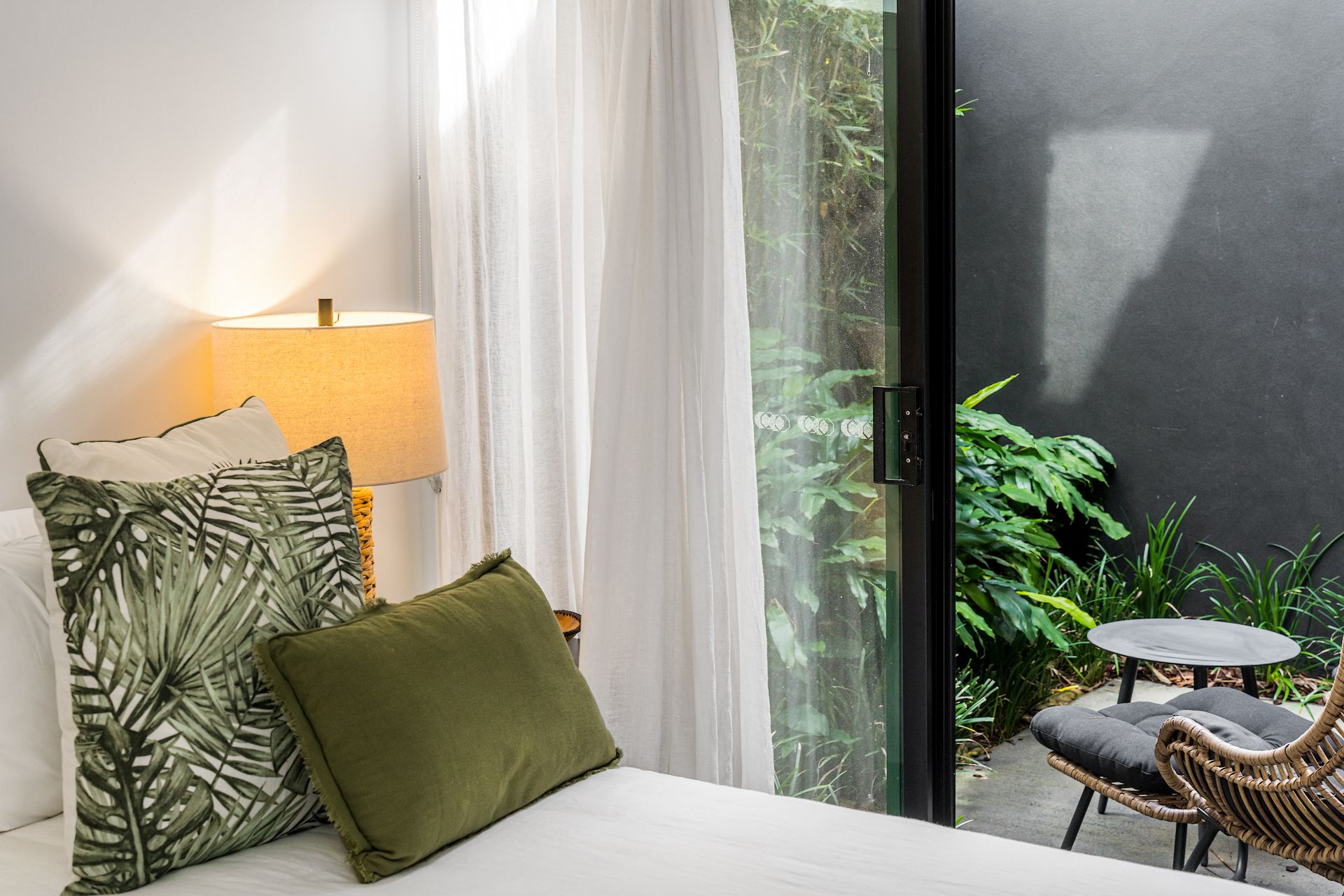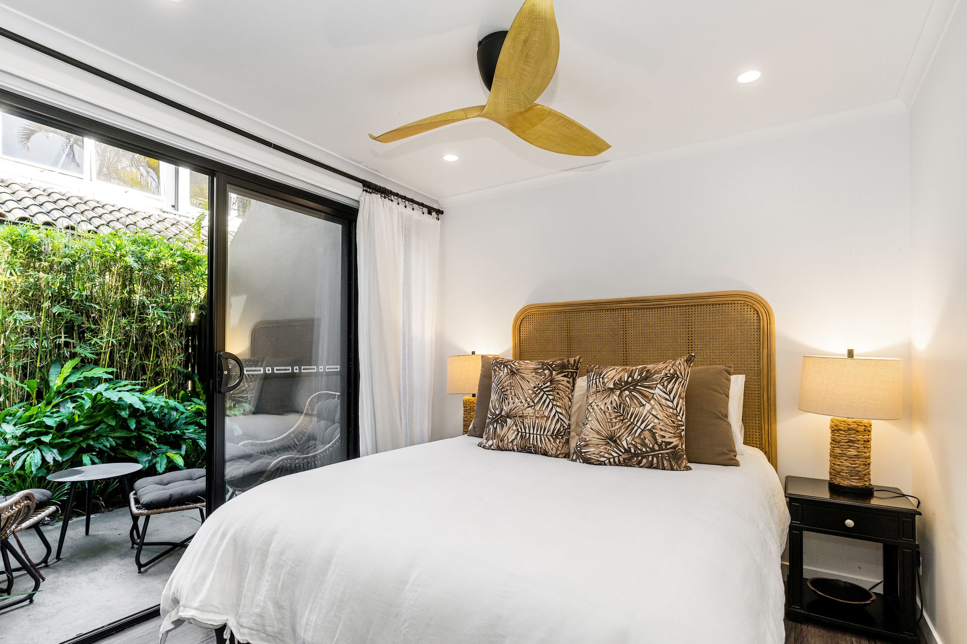 Entertain and unwind in the large, private courtyard surrounded by tropical gardens and bathed in sunlight. Enjoy summer BBQs or relax with a book on the outdoor seating. Rinse off after beach adventures under the outdoor shower. This fully-enclosed courtyard space welcomes pets.