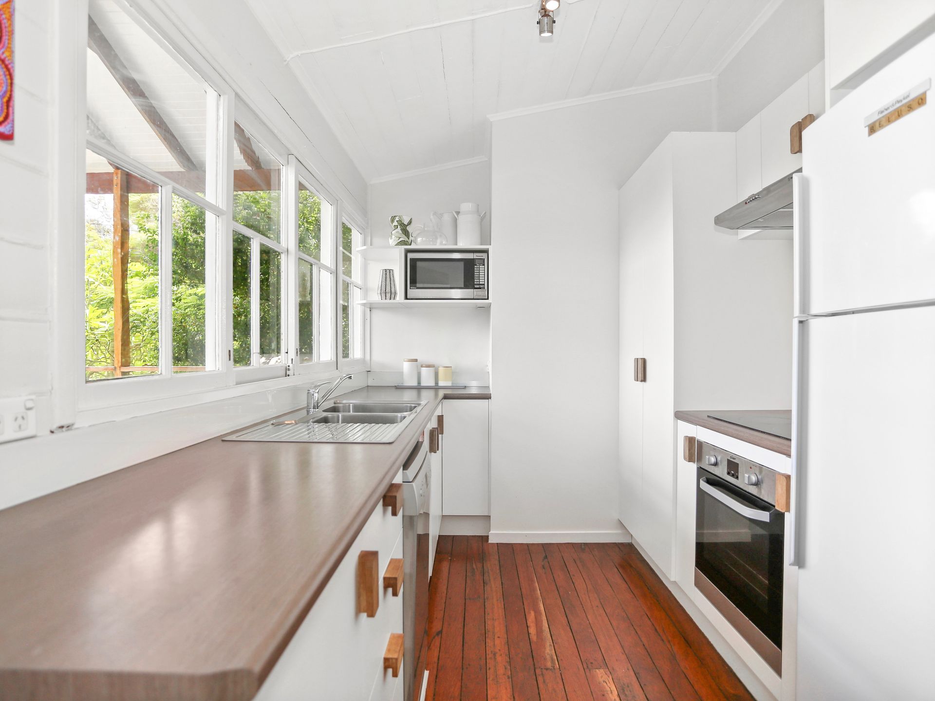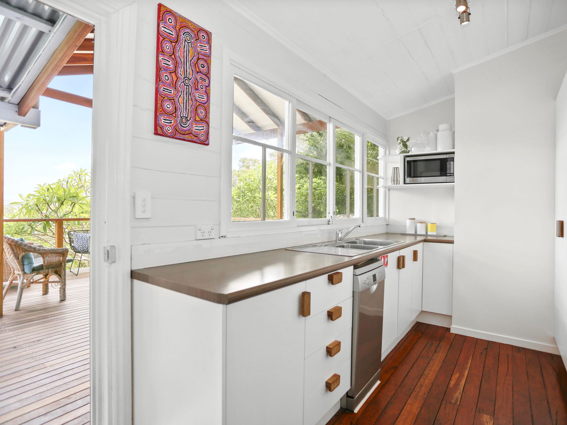 The kitchen has recently been updated and includes a new dishwasher, stove and cooktop. A perfect kitchen for those guests wanting to prepare food and eat at home. The single bathroom is a good size, functional and spotless. There are also laundry facilities with 2nd toilet and hot/cold outdoor shower.