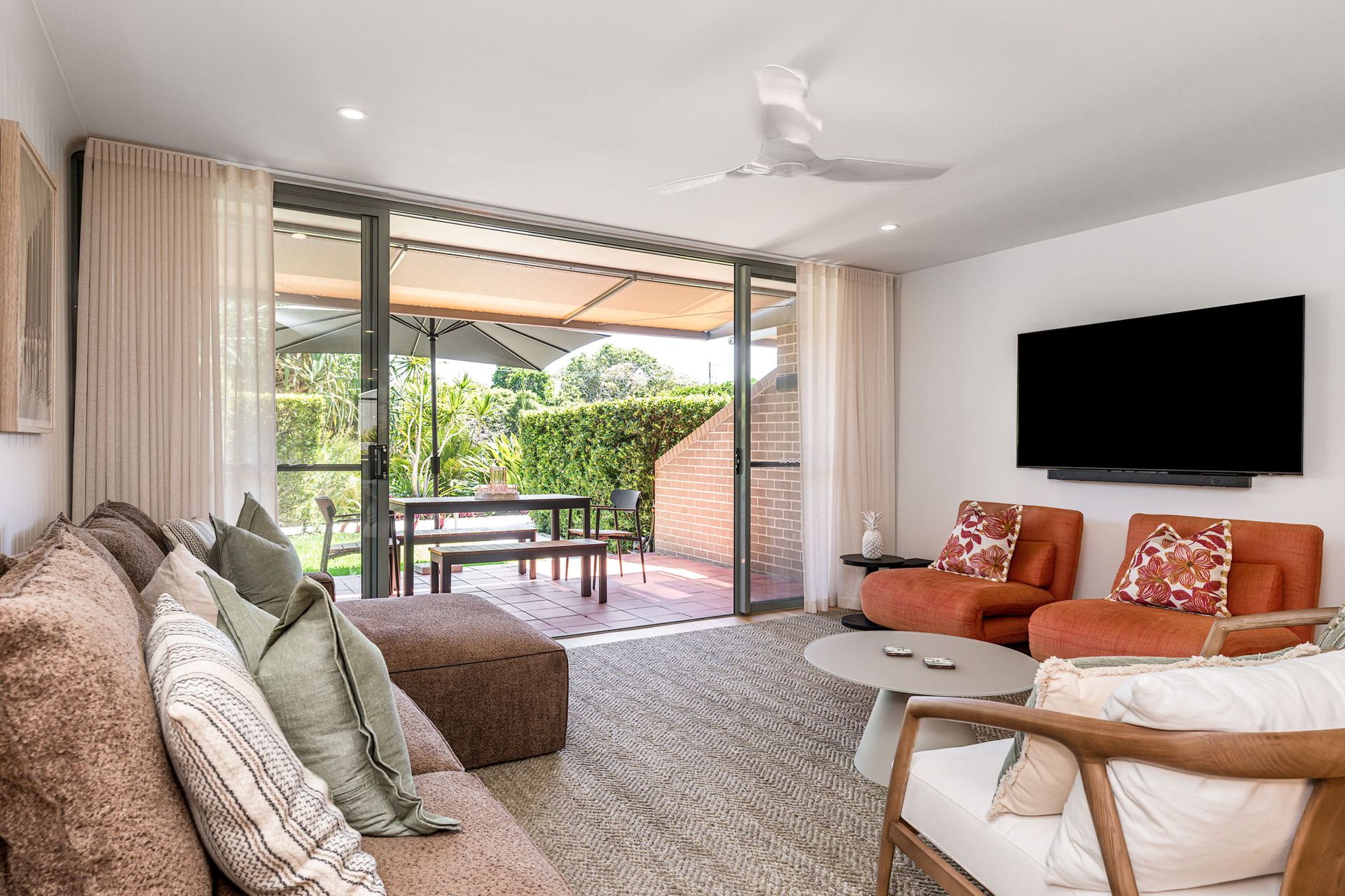Inside, enjoy open-plan living that flows seamlessly onto a private outdoor courtyard, creating the perfect indoor–outdoor connection for relaxed coastal living. The modern kitchen is fully equipped with quality appliances, complemented by a Smart TV and high-speed WiFi. Climate control is effortless year-round with air conditioning, ceiling fans, and heating.