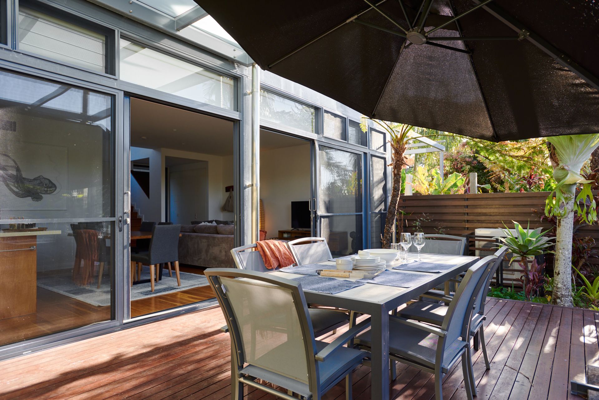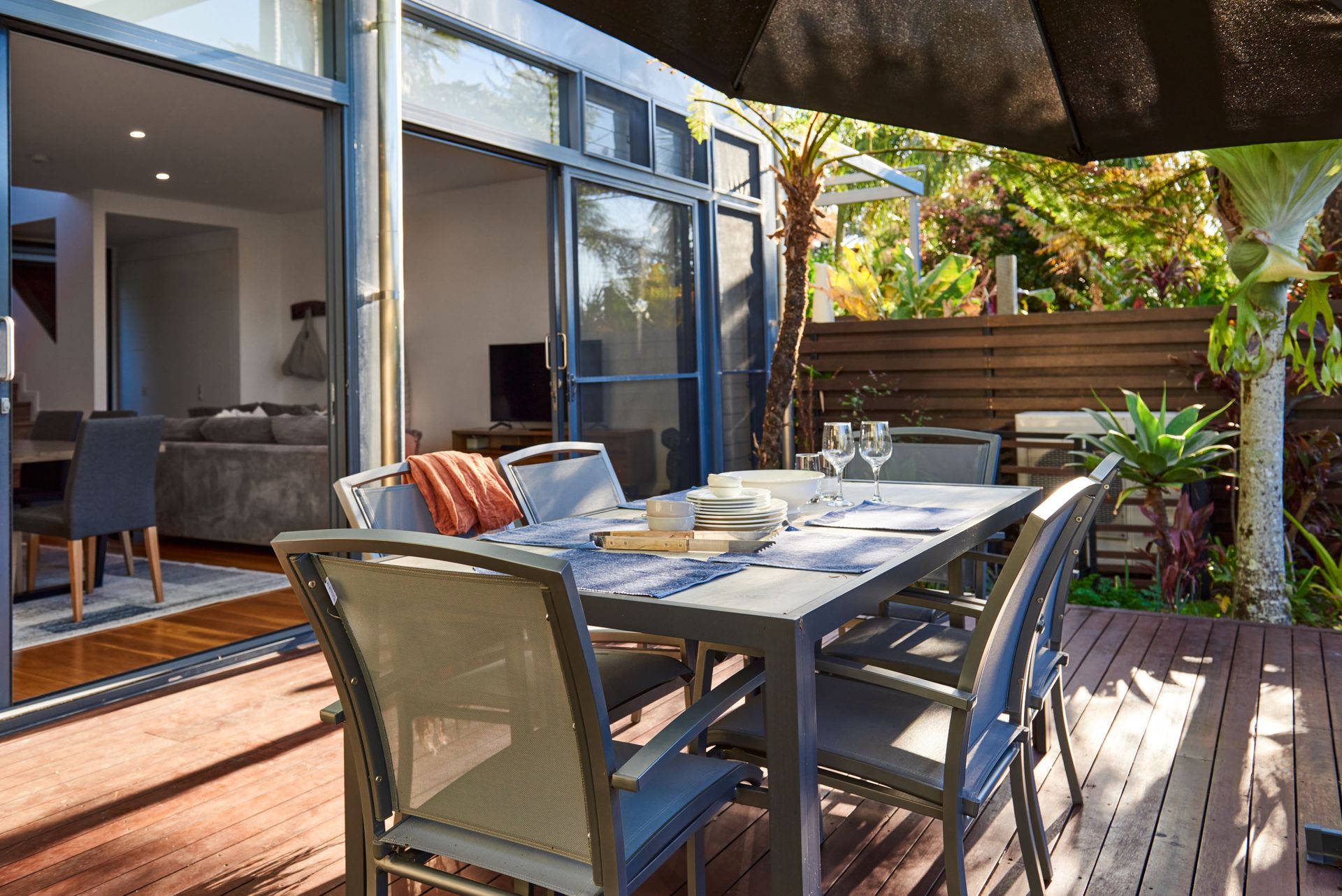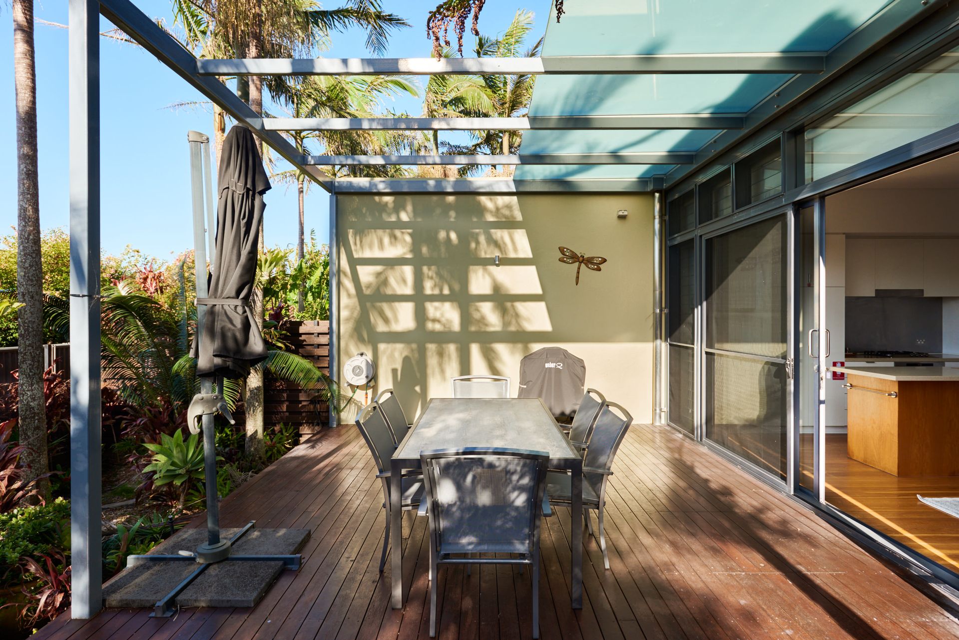 Alfresco dining area with outdoor entertainment space and BBQ