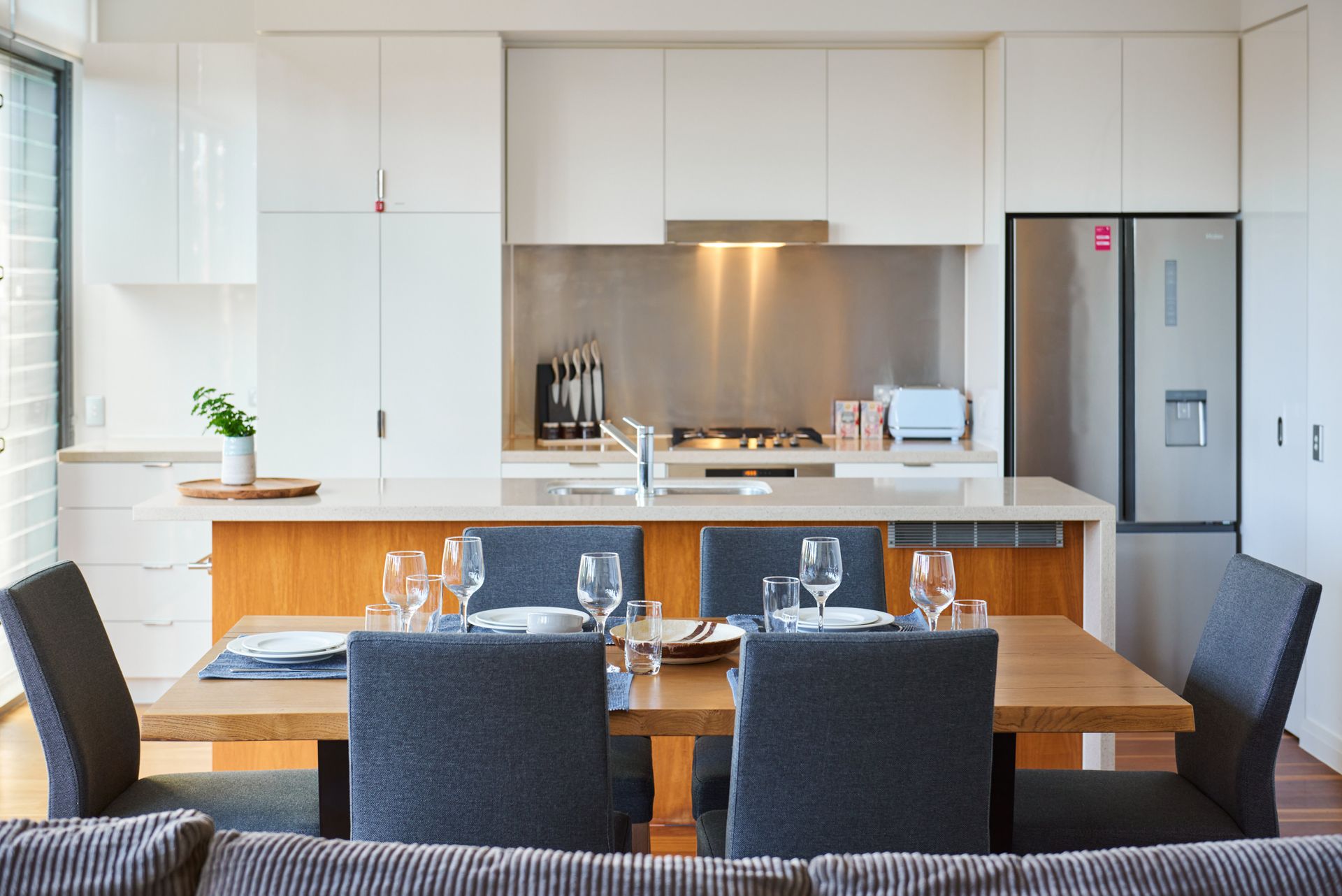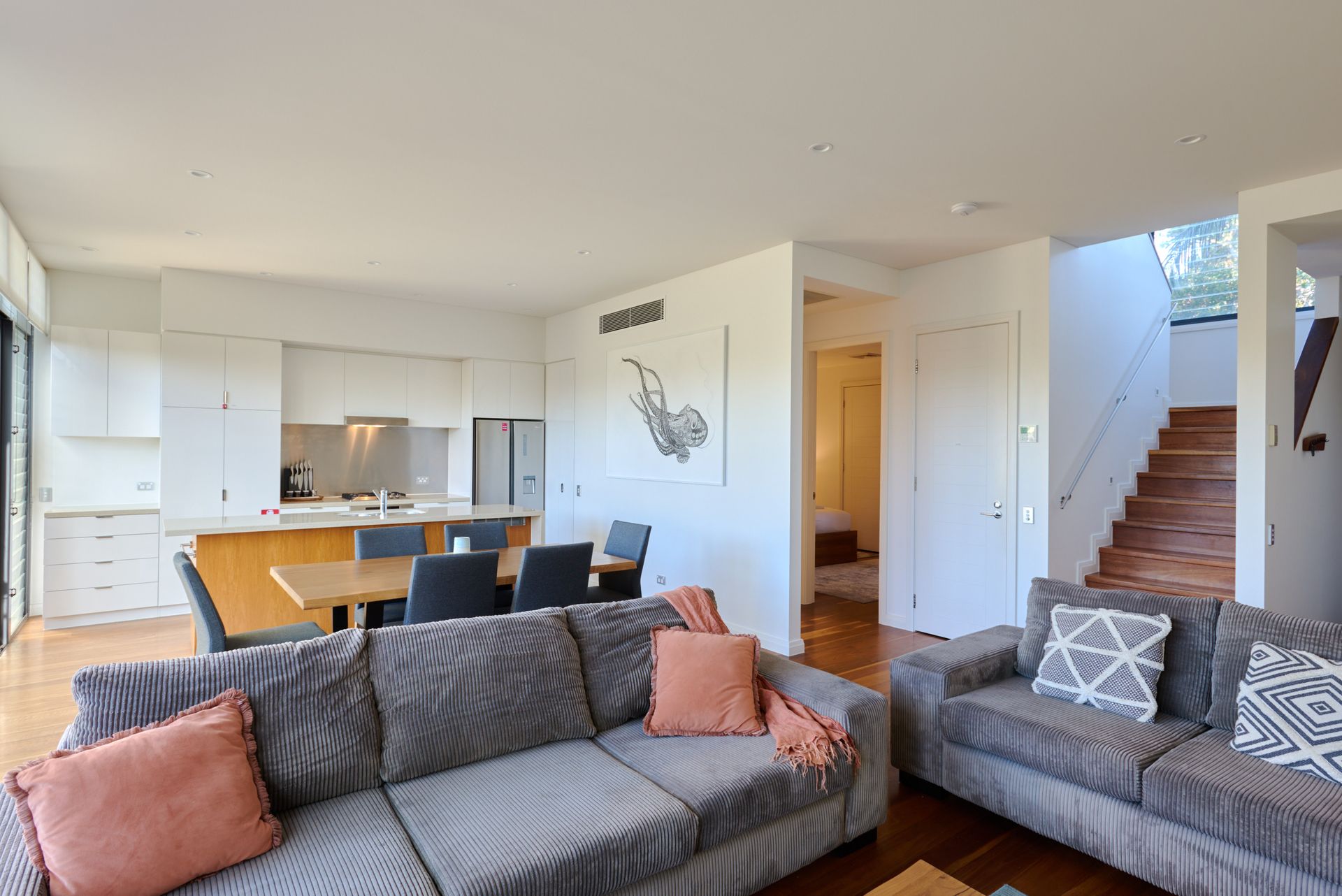 This luxurious three-bedroom townhouse is beautifully designed with ample space and all the comforts of home. Each bedroom offers a pleasant surprise - crisp linen, ceiling fans, and a promise of a restful sleep.