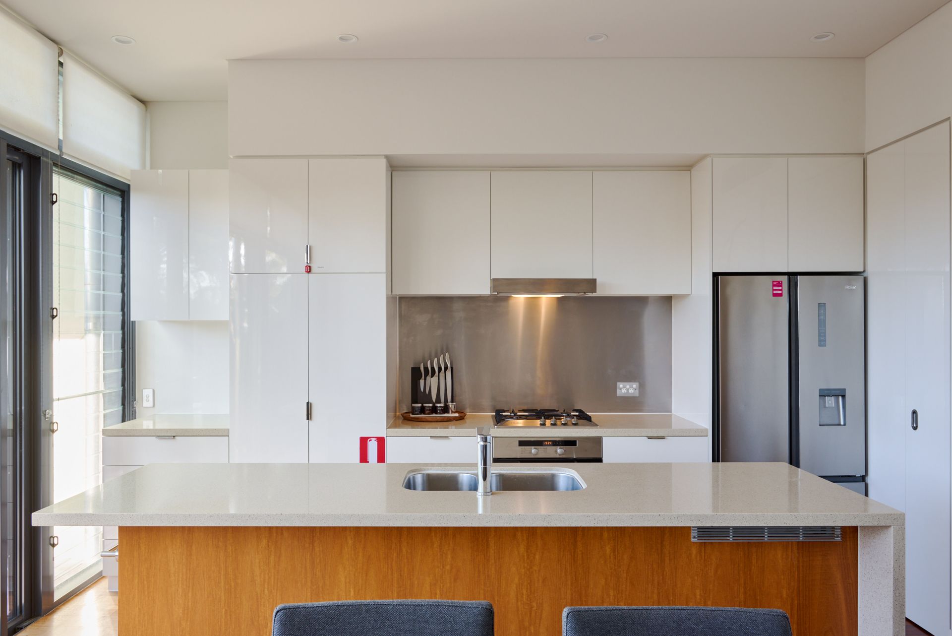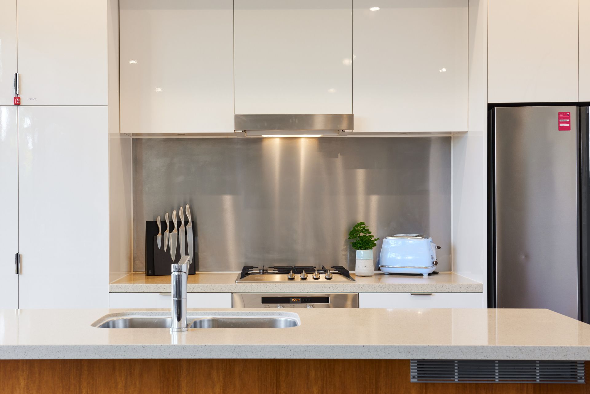 Modern kitchen with gas cooktop, dishwasher