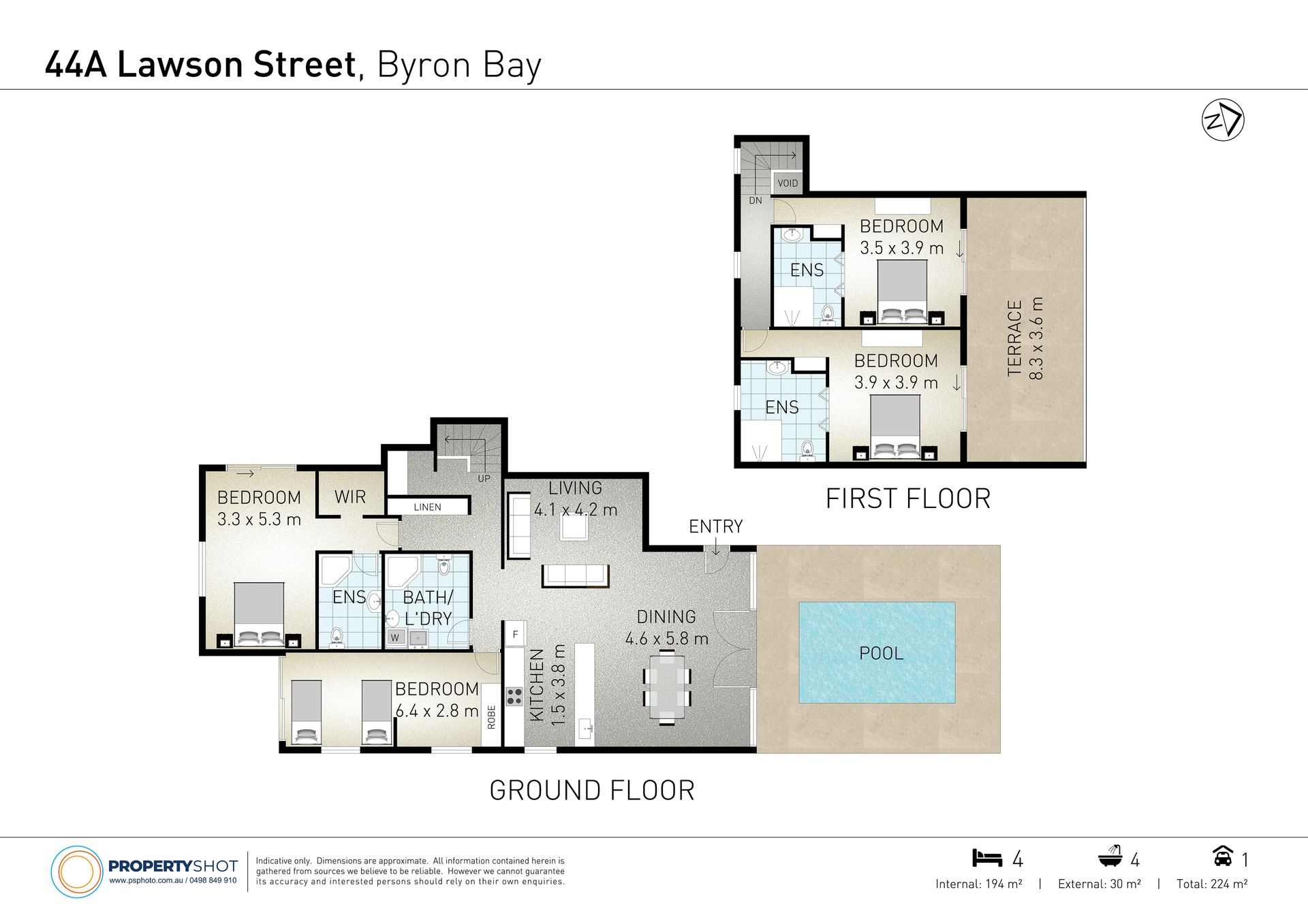 Welcome to "Lawson House 1," a spectacular holiday home nestled beachfront in captivating Byron Bay in NSW. This perfectly appointed home offers a blissful retreat for up to 8 guests with four good sized bedrooms, four well finished bathrooms and swimming pool.Step into a delightful setting replete with stunning decor and natural light that fills the spacious living areas. The bedrooms offer the utmost comfort, each equipped with a variety of bed sizes to accommodate every guest's preference, ensuring restful slumbers after your days of adventures. Several bedrooms boast ensuite bathrooms for added privacy and convenience.