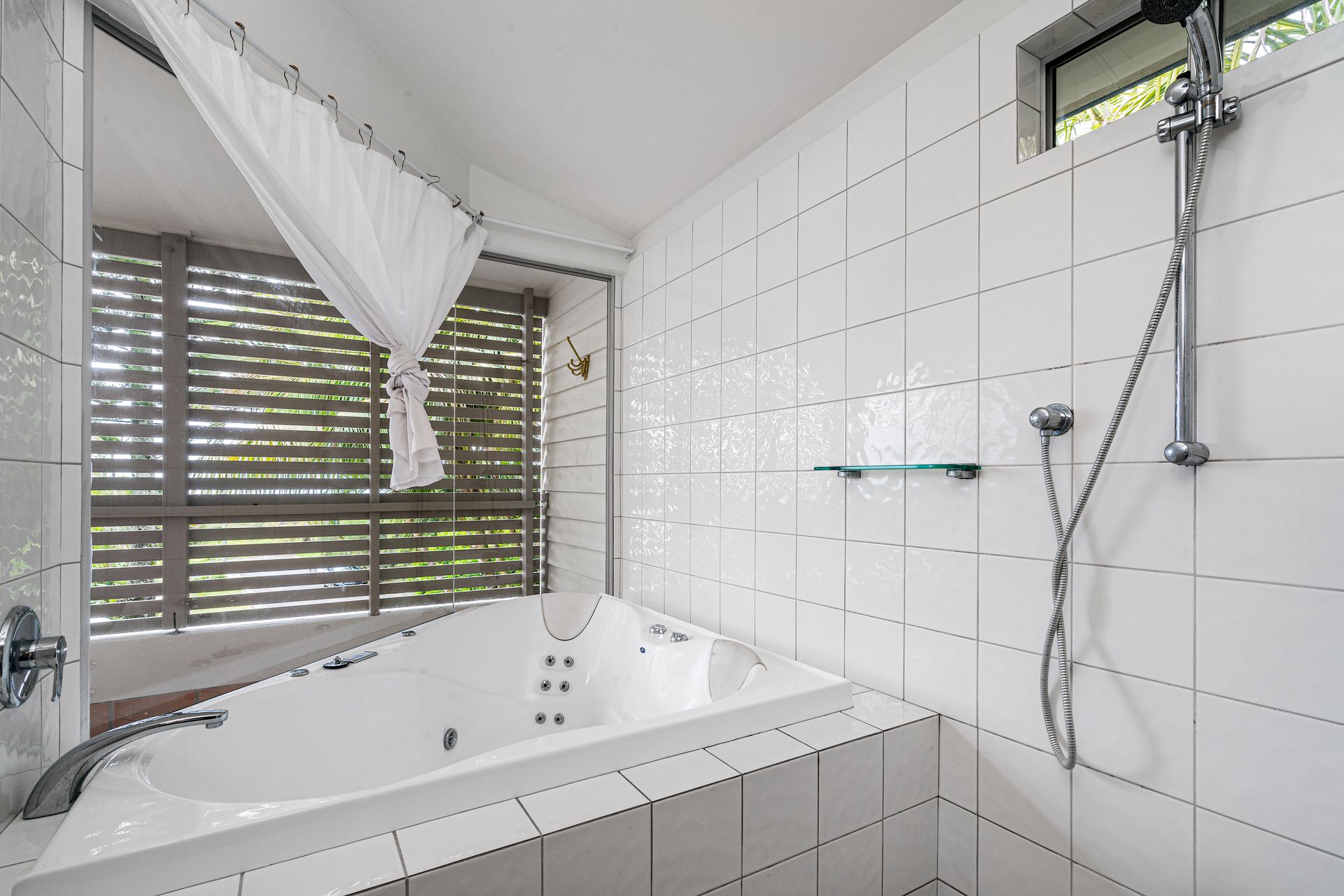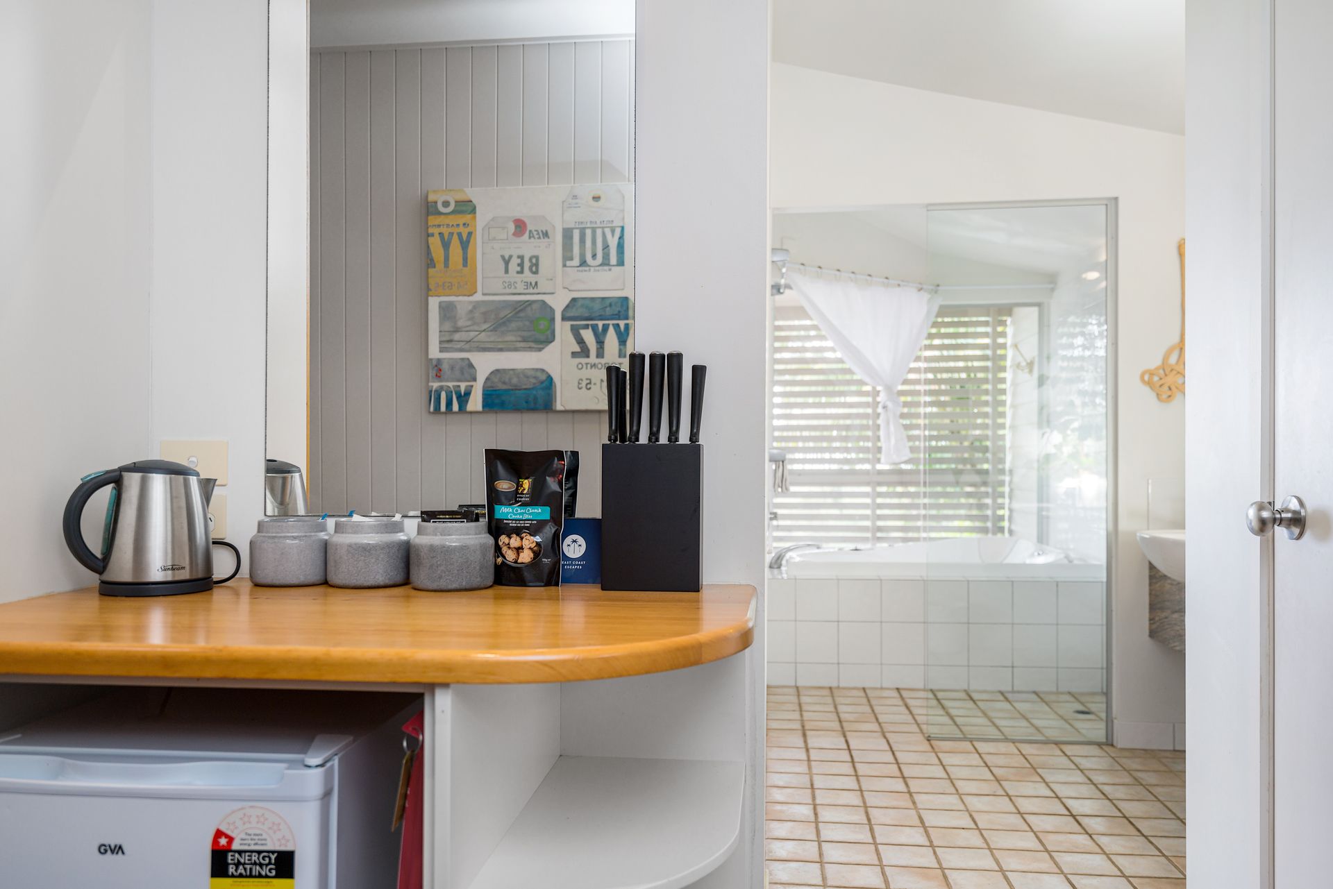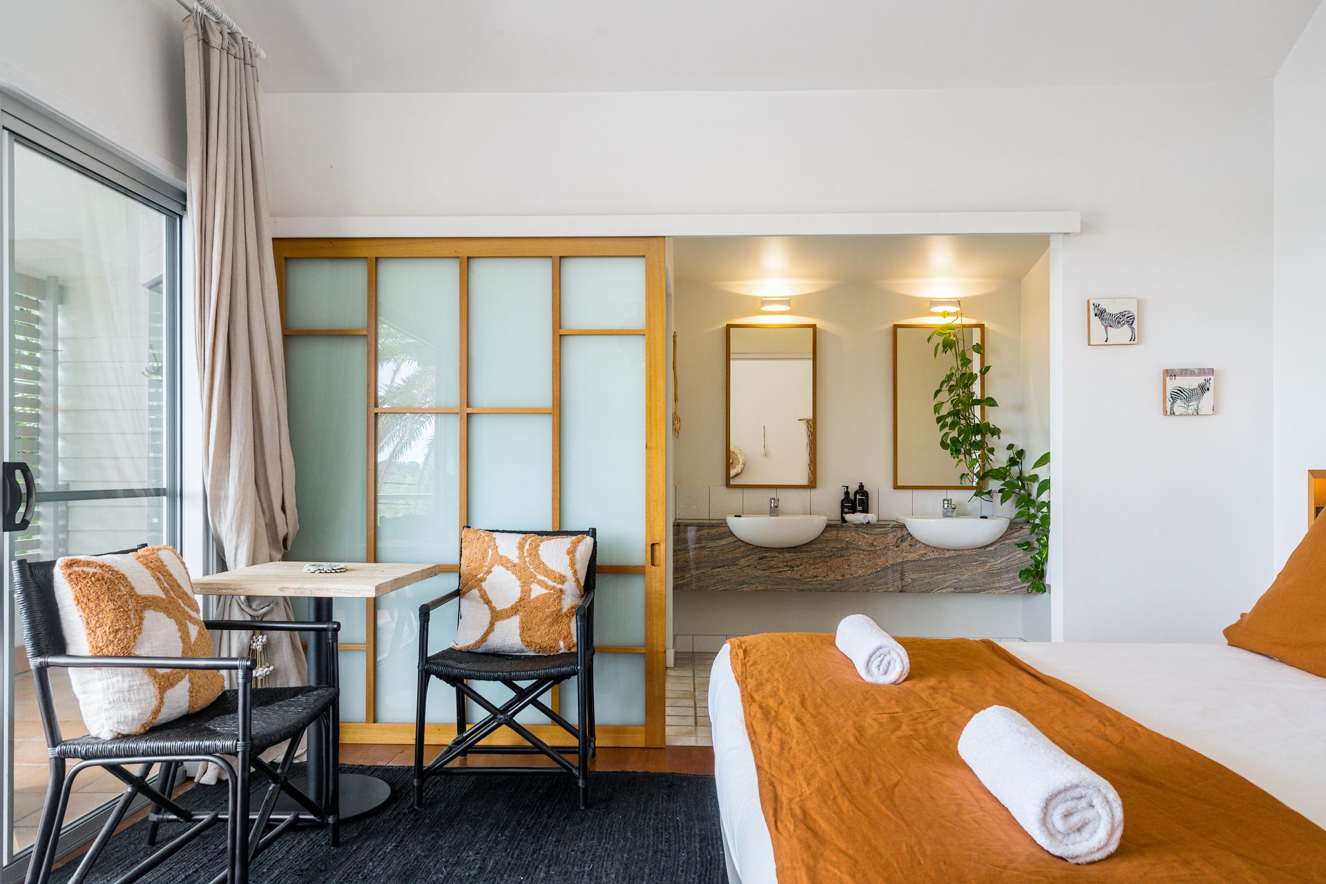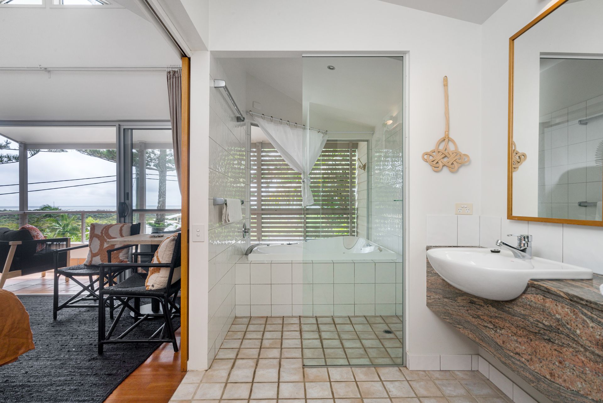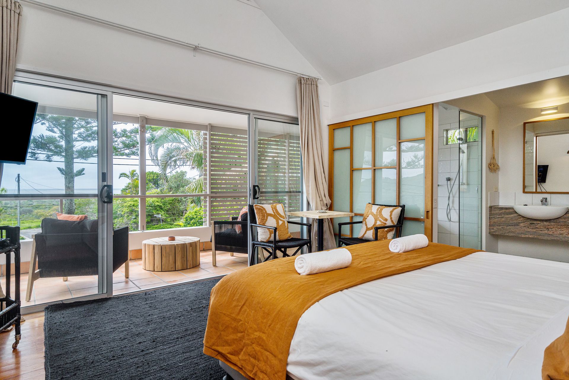 The large functional ensuite has a decadent spa bath with views directly to Cape Byron Lighthouse.