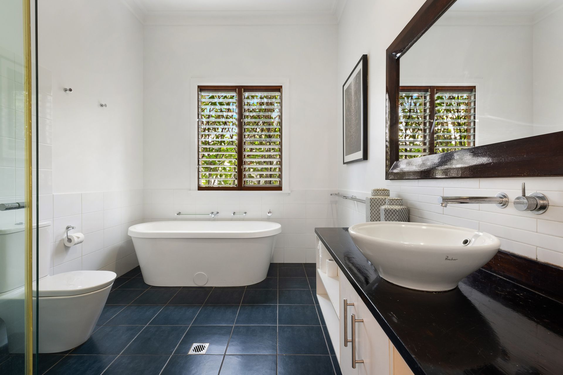 Unwind in one of the home's hammocks, or recline on the spectacular timber-decked wraparound verandah while enjoying views of the surrounding trees and tropical gardens. The rear of the property features a BBQ area with an 8-seater dining table – ideal for alfresco dining during warmer months.