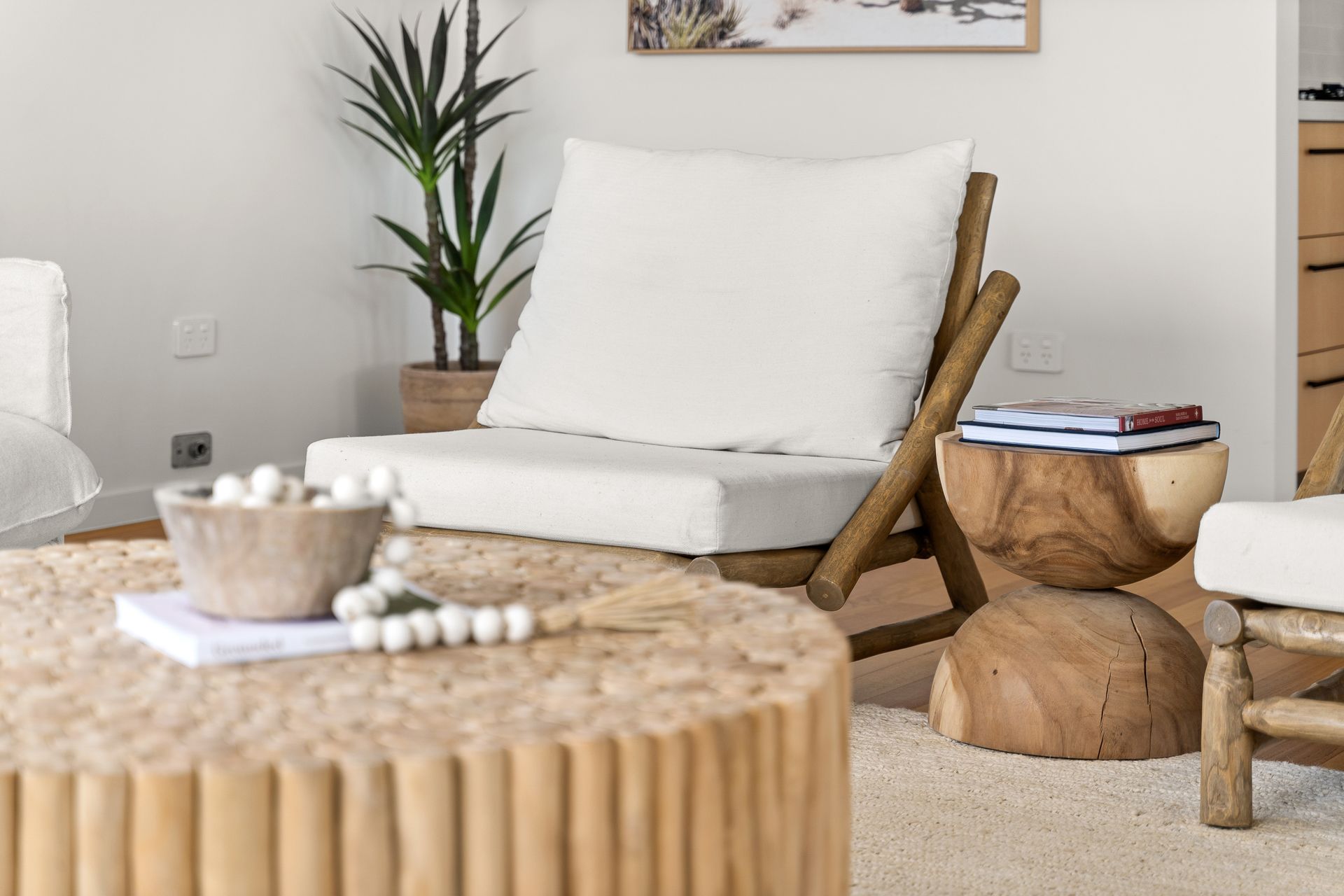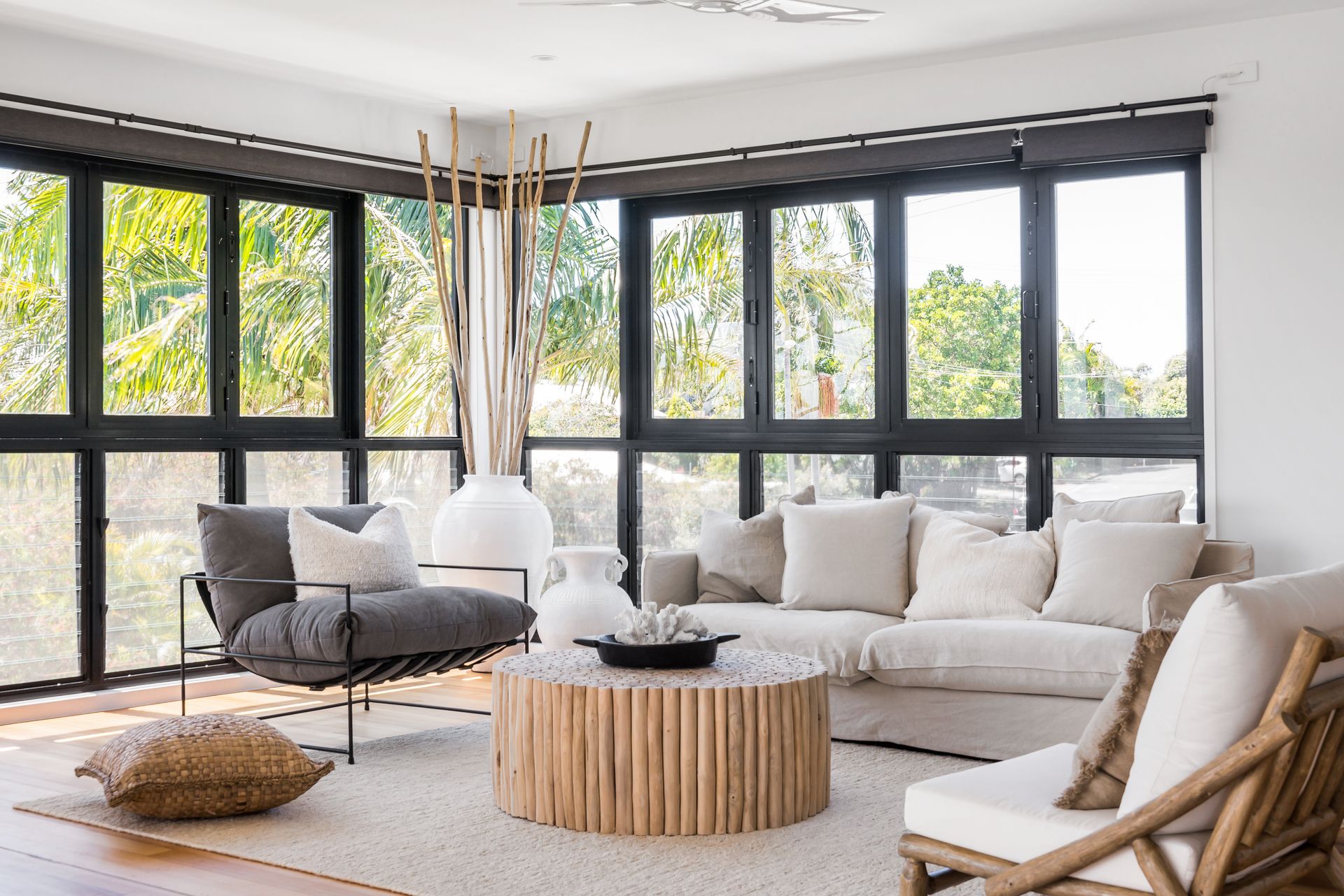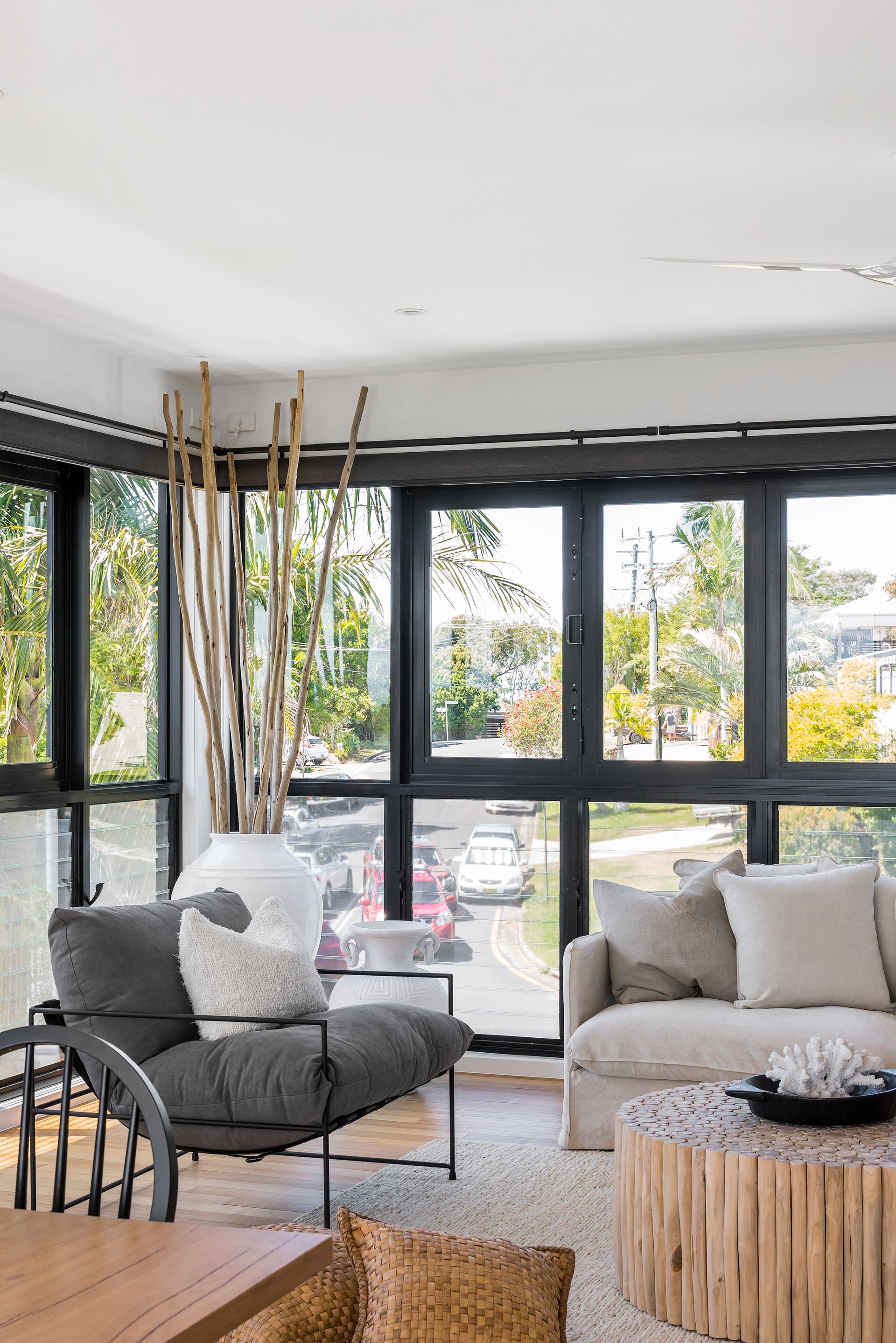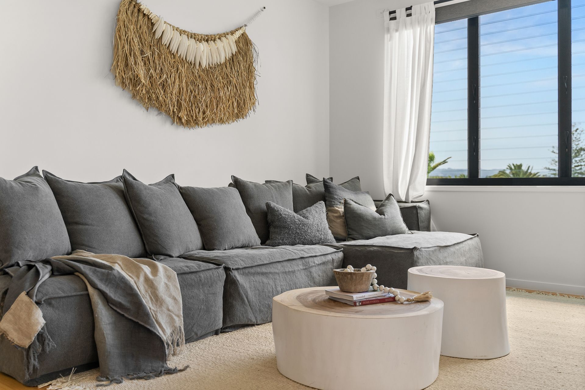 This freshly styled area captures natural light through floor-to-ceiling windows, offering sweeping views across Byron township to Mt Warning and the picturesque hinterland beyond. Glide across polished timber floors to designer rugs that cushion your feet as you relax on plush, comfortable seating. The space features reverse-cycle air conditioning for year-round comfort.