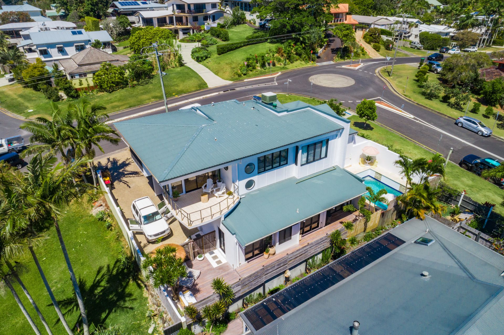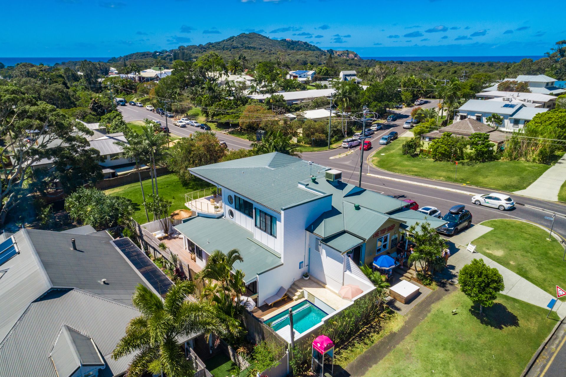 For those seeking the authentic Byron Bay experience, Salta's location is unbeatable. Positioned at the top of one of Byron's most famous streets, surrounded by swaying palms and lush vegetation, you'll enjoy cooling sea breezes, spectacular views, and friendly local encounters. Grab a takeaway coffee from the neighboring Top Shop Café before walking to nearby beaches. The property offers convenient access to recreational facilities including soccer fields, basketball courts, and tennis courts (available for hire), plus easy proximity to Byron's vibrant town center. Supermarkets and essential services are all within easy reach, creating a truly complete home away from home experience.