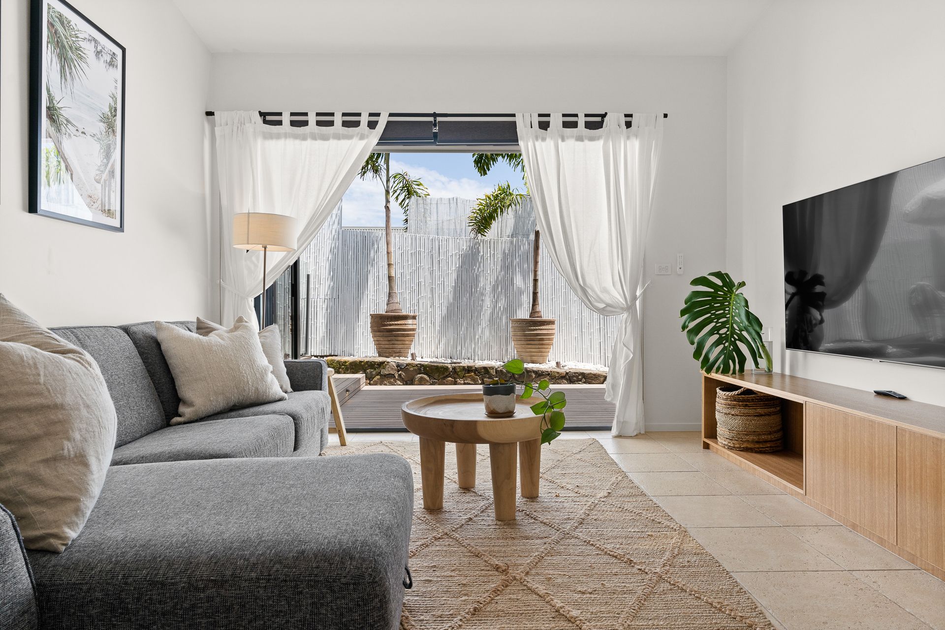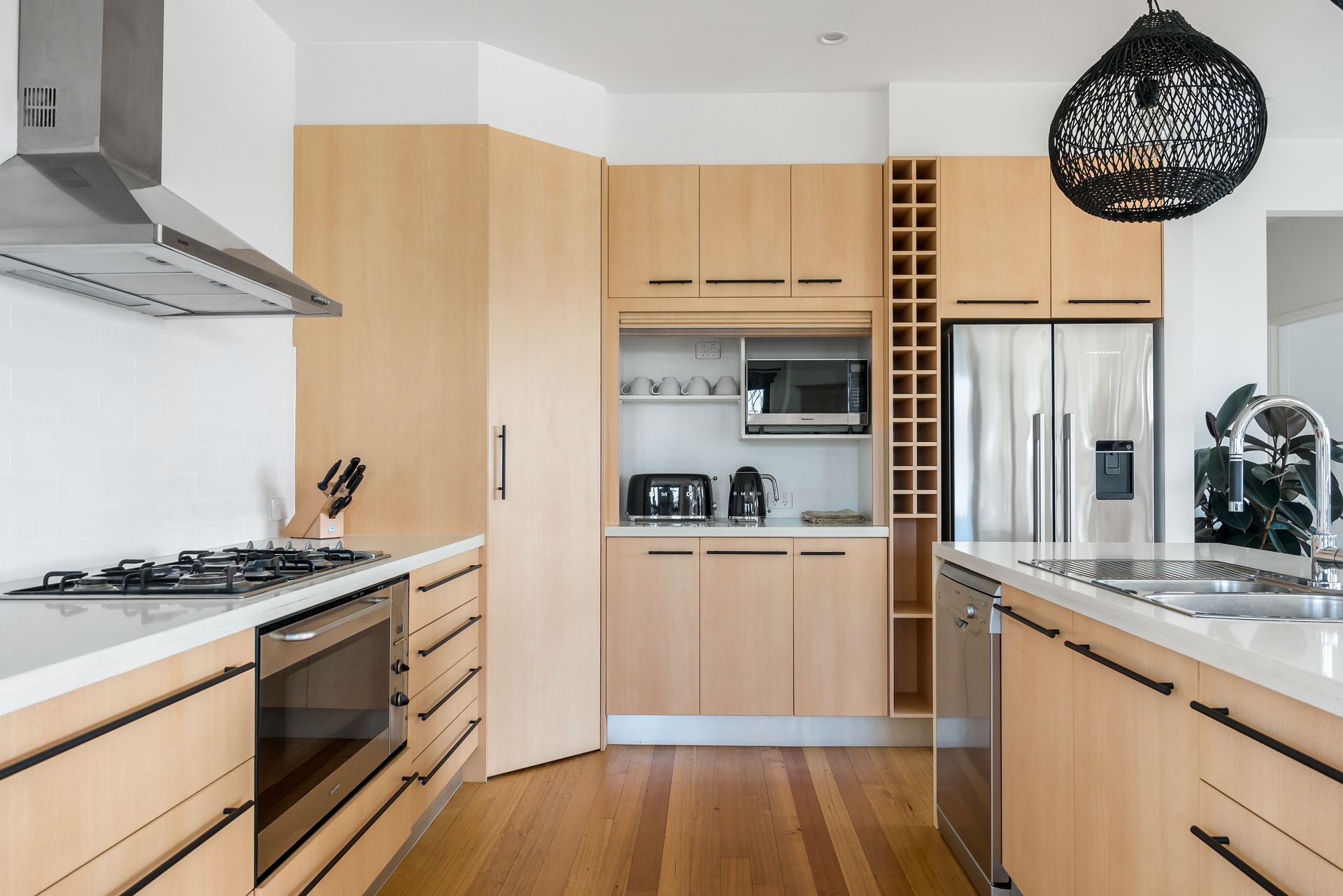 The entertainment area includes a Smart TV with Netflix and Foxtel, while the open-plan kitchen provides ample bench space and modern appliances for culinary creations that make holiday dining a pleasure.