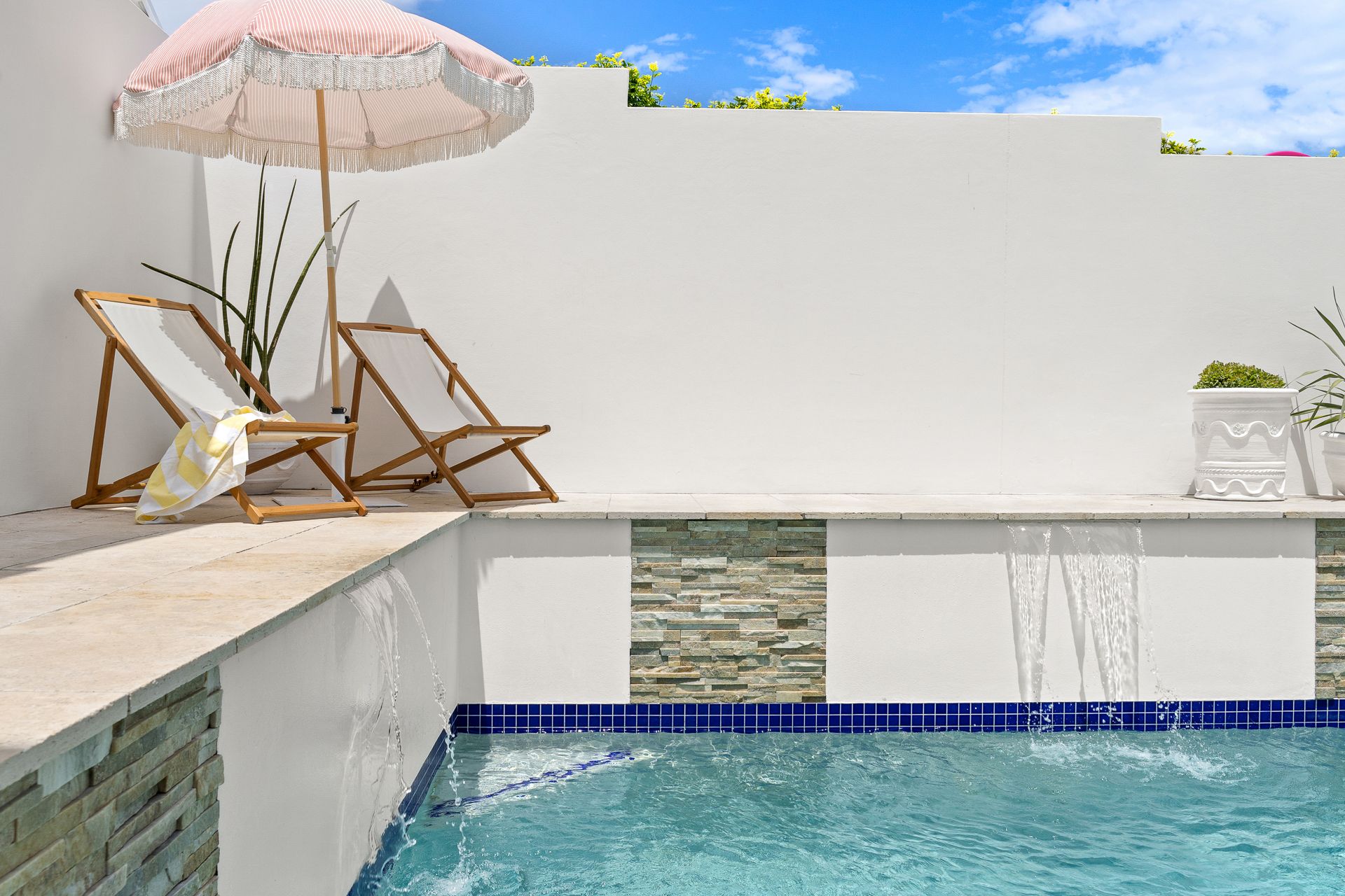 Mineral swimming pool with sun loungers & outdoor cold shower