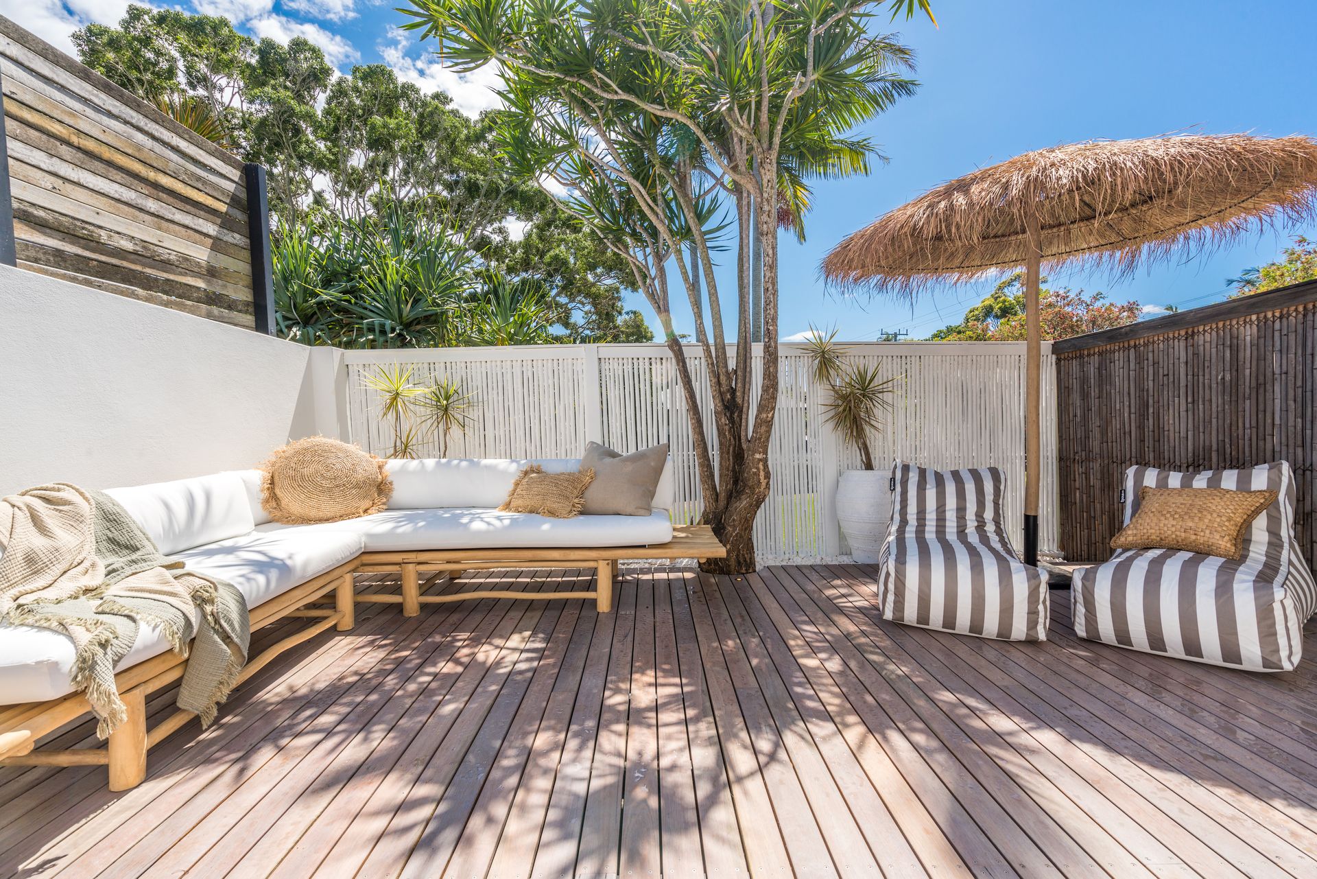 Downstairs, alongside three bedrooms, you'll discover a rumpus room with Smart TV opening onto a fully enclosed timber deck and courtyard – perfect for kids to enjoy while parents relax upstairs.