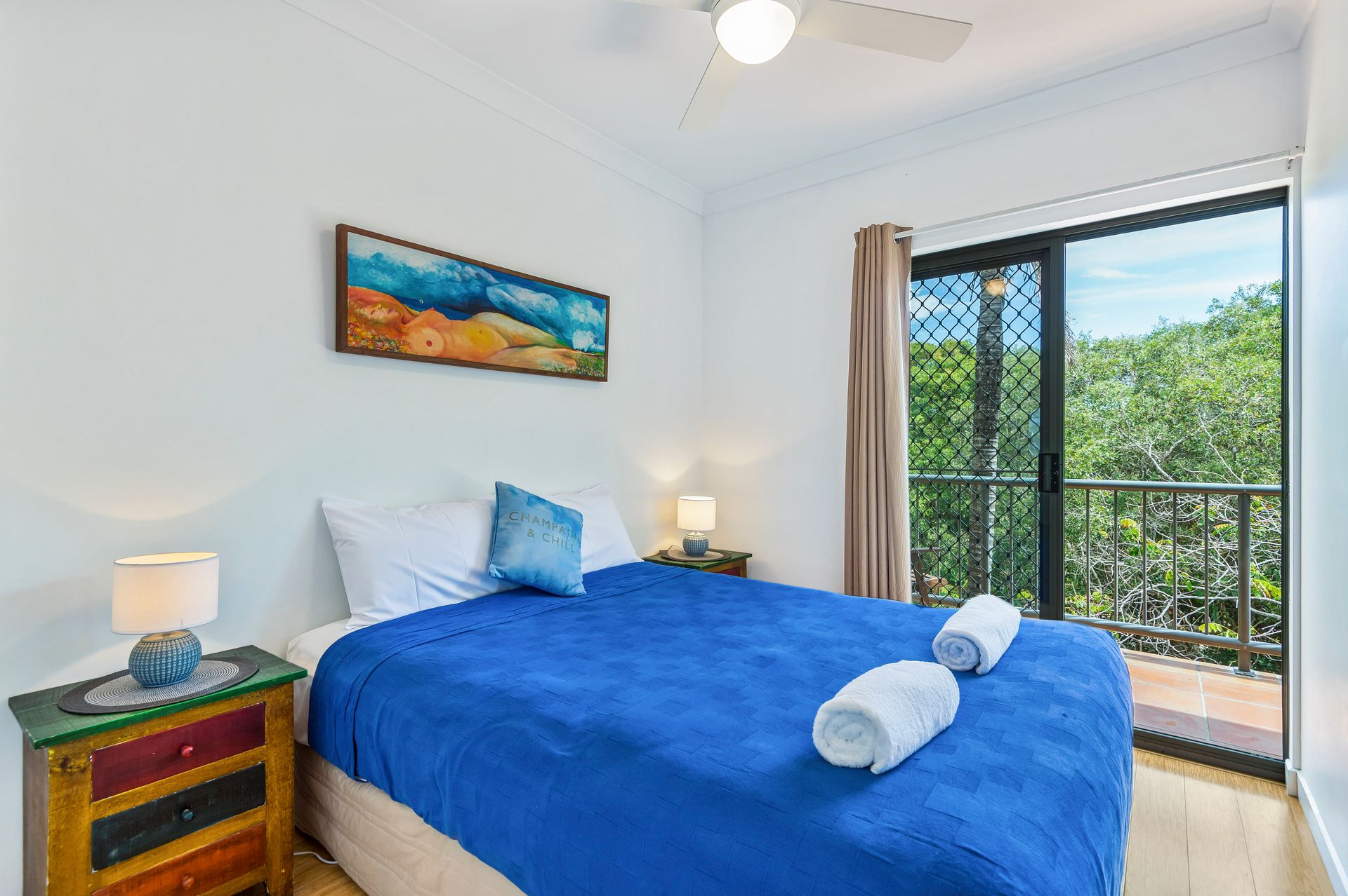 The living space is a summer escape, complete with a Smart TV, Wi-Fi, and air conditioning to ensure optimum comfort. The large balcony invites a morning coffee or evening wine sessions beneath the beautiful Byron Bay sky.
