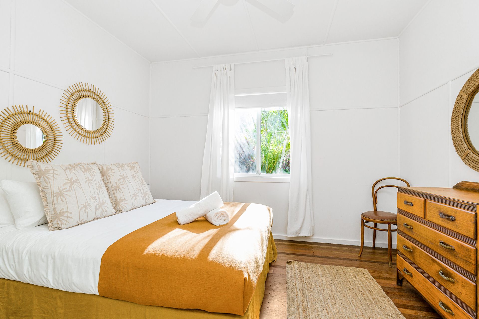 There is a brand new fully equipped functional kitchen that has an electrical oven, fridge freezer, dishwasher and plenty of kitchen utensils and accessories. The kitchen is perfect to cook and prepare home meals or if cooking on holidays is not your thing, Bungalow105 is a 15 – 20 min walk or super quick bike ride to great cafes and bars. The General Store is a 5 min walk and has super yummy meals and great coffee.