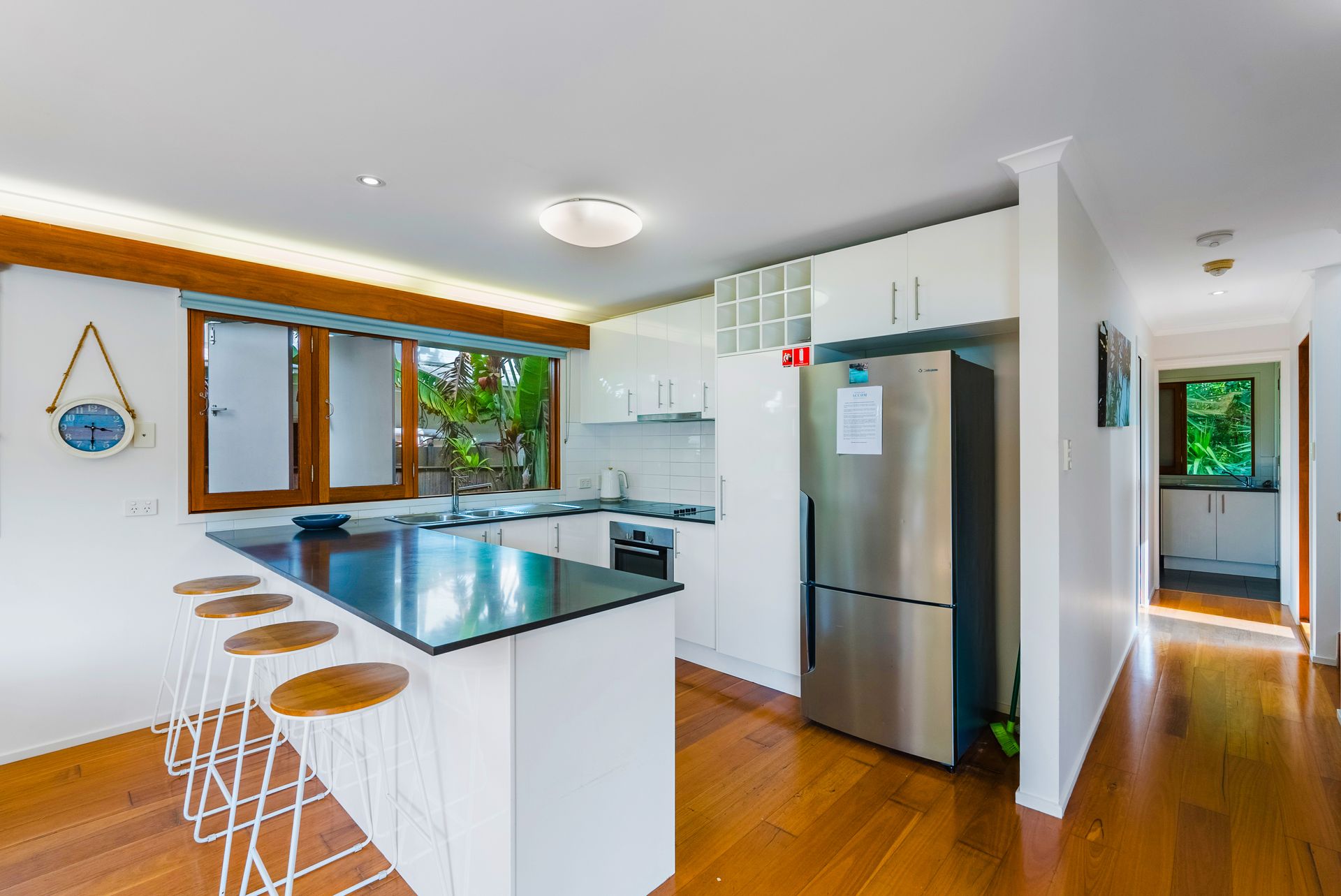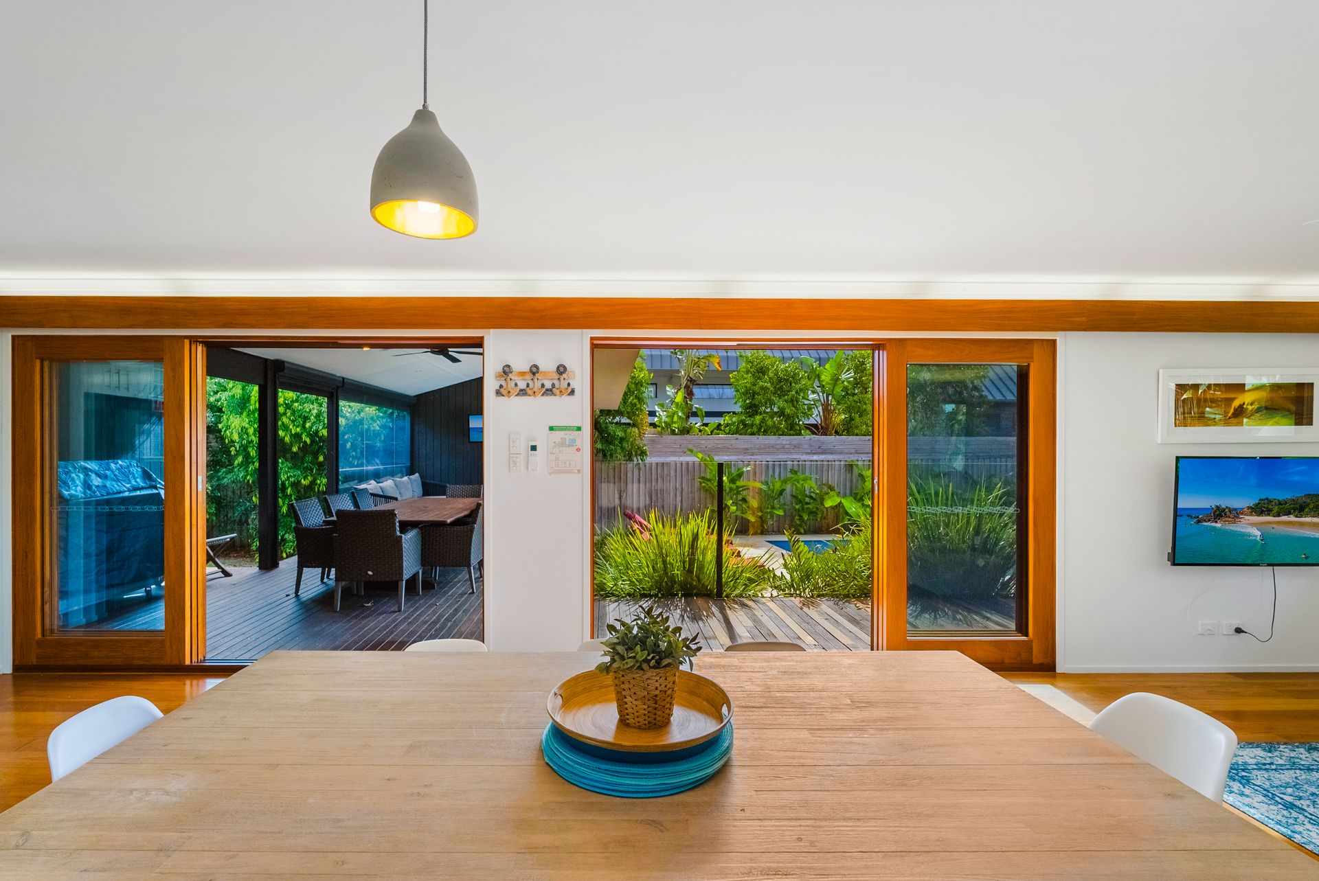 Four generous bedrooms including a master and ensuite with air conditioning in two queen bedrooms for year-round comfort. The modern central kitchen with island bench makes for seamless and easy holiday dining whether you plan to eat in or it's a quick breakfast at the island bench before a day on the beach.