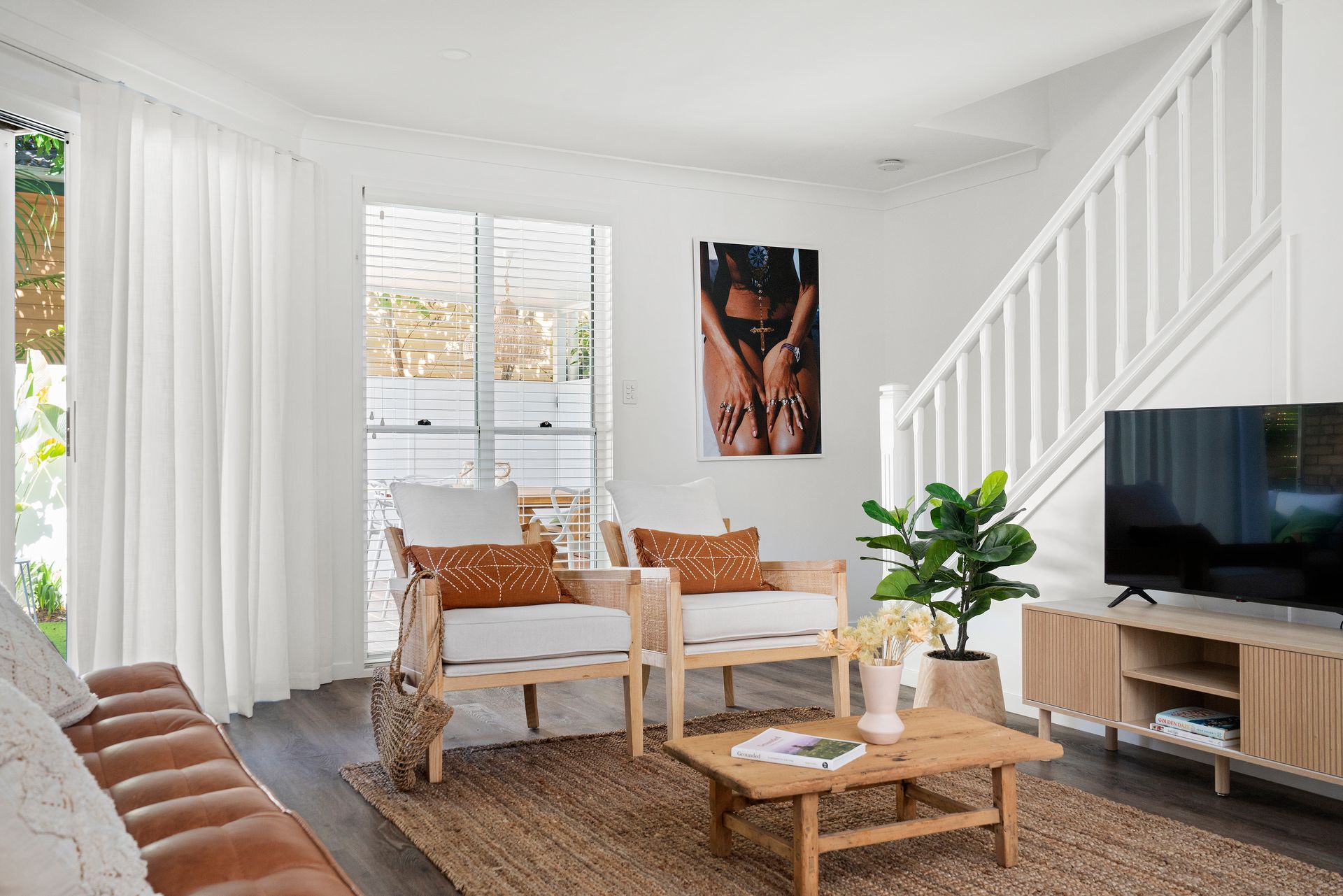 Set in a quiet complex, The Bach is walking distance to all Byron has to offer. Renovated with a coastal luxury feel, the downstairs area comprises of open-plan living, dining and lounge area. Spilling out to a sunny courtyard, the outdoor space is designed to invite sun-drenched days chilling out with a picnic, glass of wine and a good book.