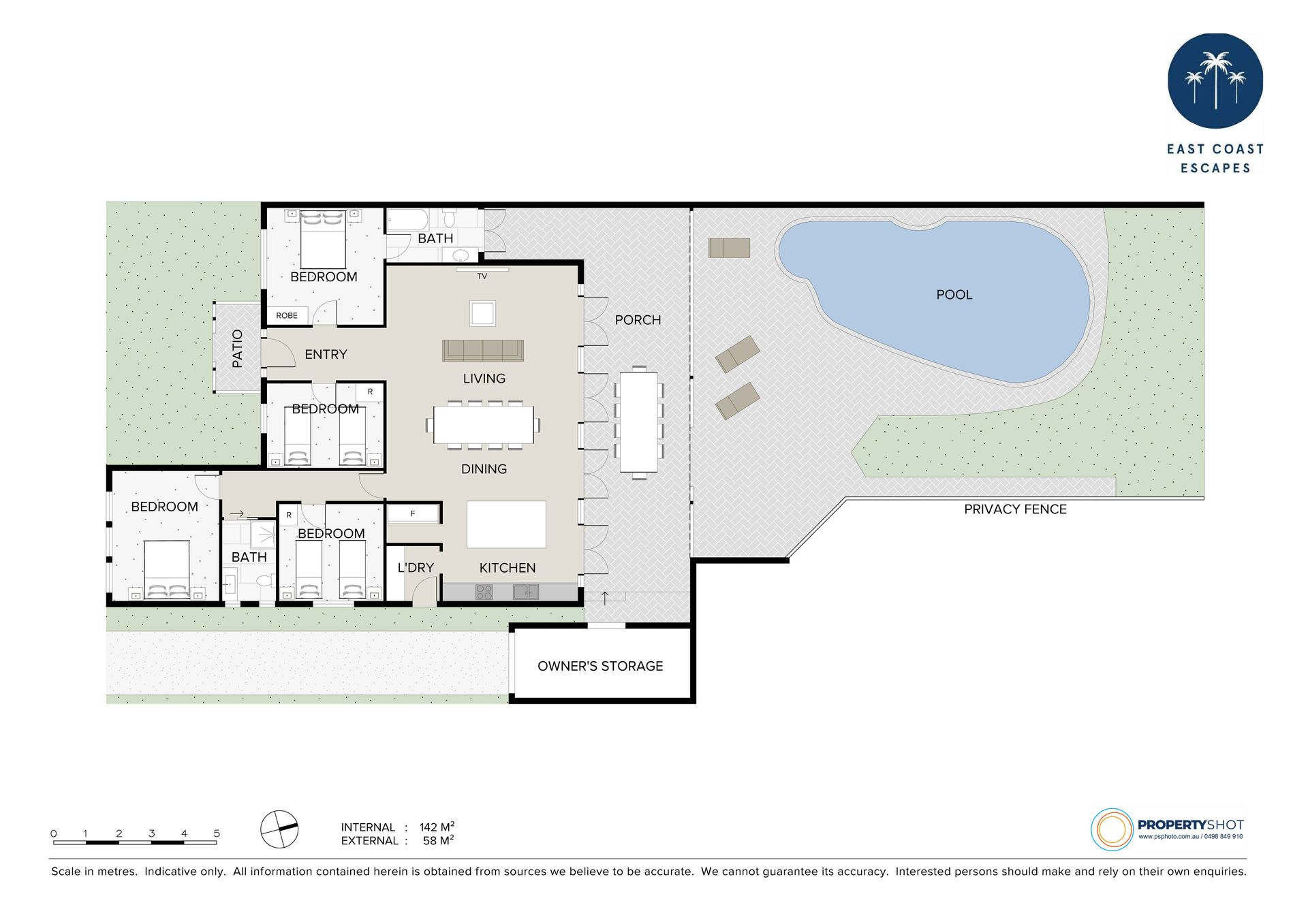 For cot hire, high chairs or extra linen please contact Byron Bay Holiday Hire