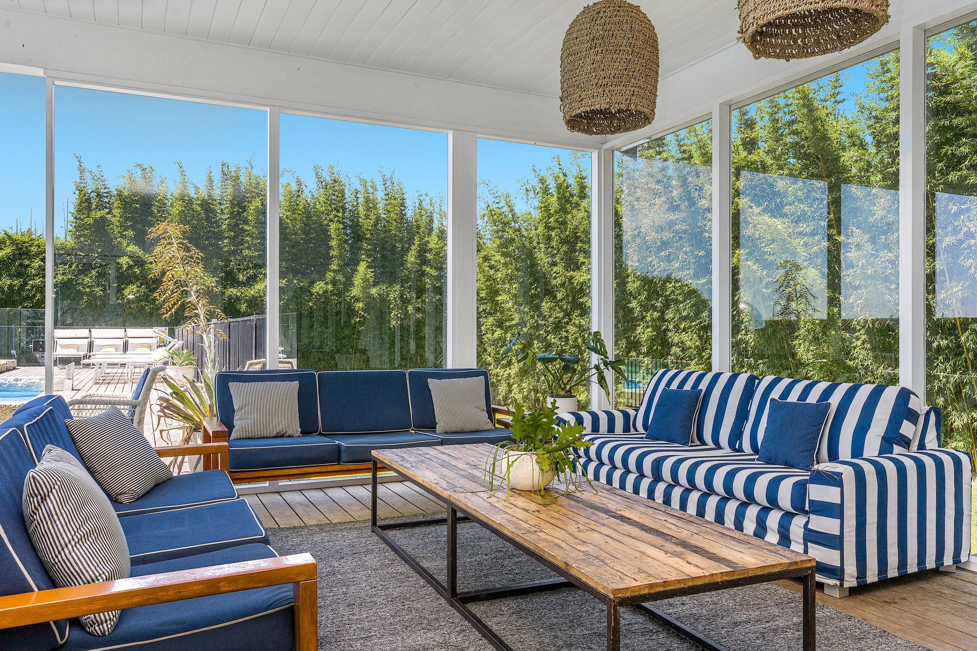 Huge covered outdoor entertaining area with BBQ, outdoor dining and loungers